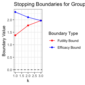 #> [1] 1375.776Stopping boundaries for the group sequential CRT design can also be visualized.